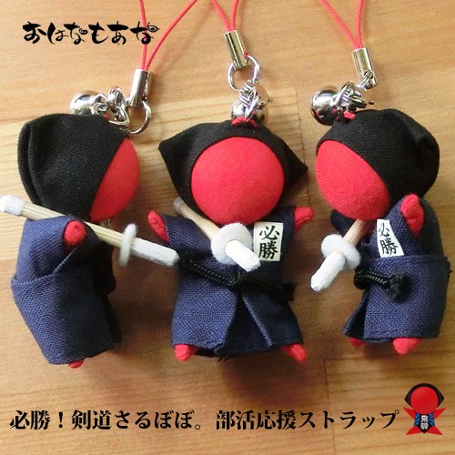 おはなもあな 剣道 お守り 2個 セット 優勝 必勝 レギュラー祈願 部活 さるぼぼ ストラップ キーホルダー 小学 中学 高校