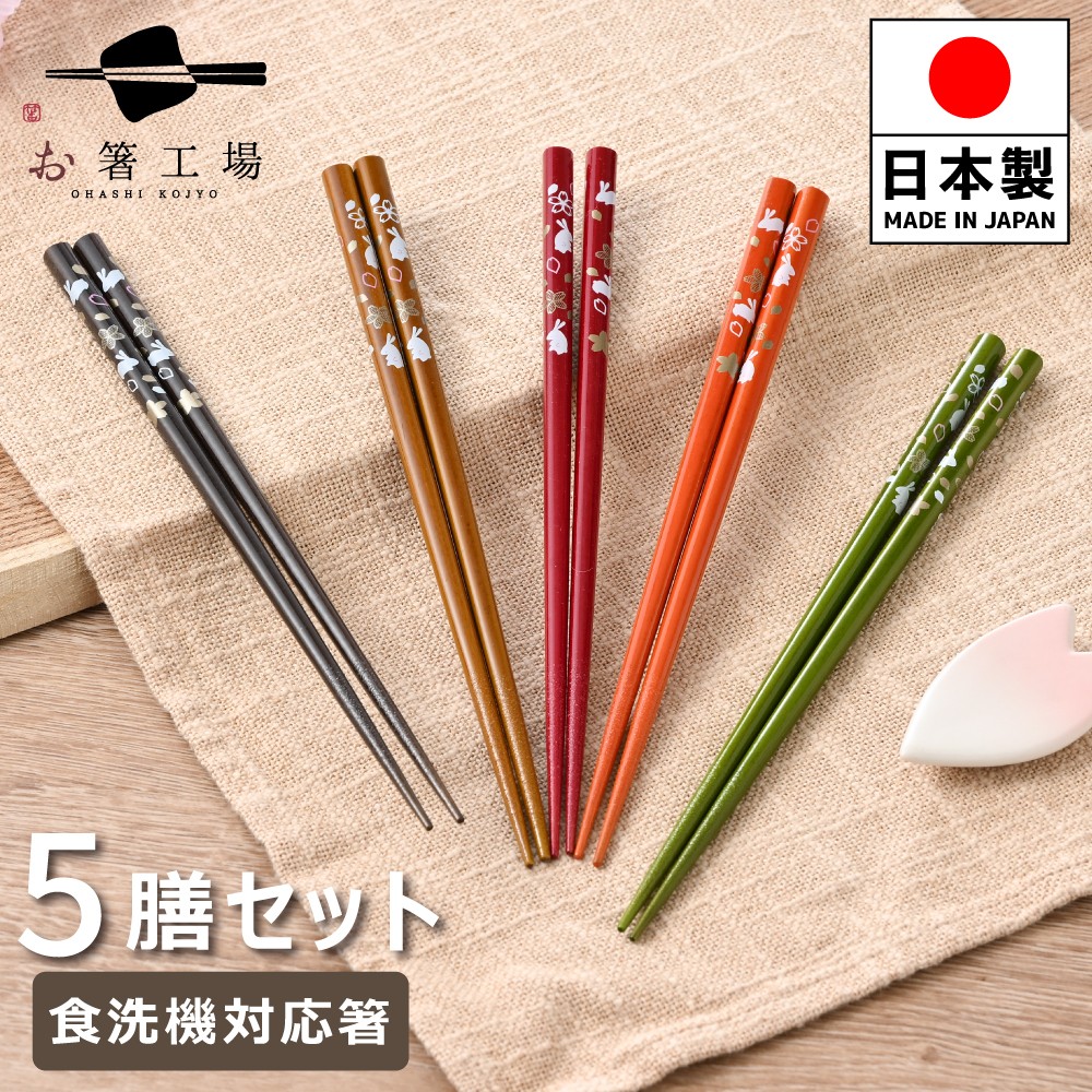 箸 箸セット 塗箸 桜うさぎ 5膳 セット/ お箸 若狭塗 食洗機対応 日本製 国産 滑らない 滑り止め付 和風 箸セット おしゃれ 送料無料