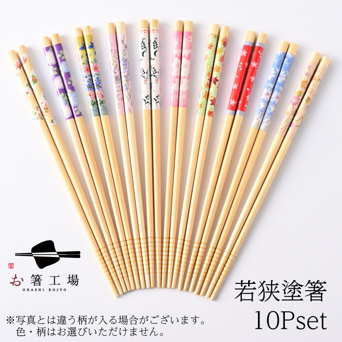 塗箸 白竹 花柄アソート 10膳 セット / 竹 食洗機対応 若狭塗 国産 滑らない 滑り止め付 箸セット 木製 おしゃれ かわいい