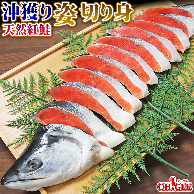 | 沖獲り 天然紅鮭 姿 切り身 |