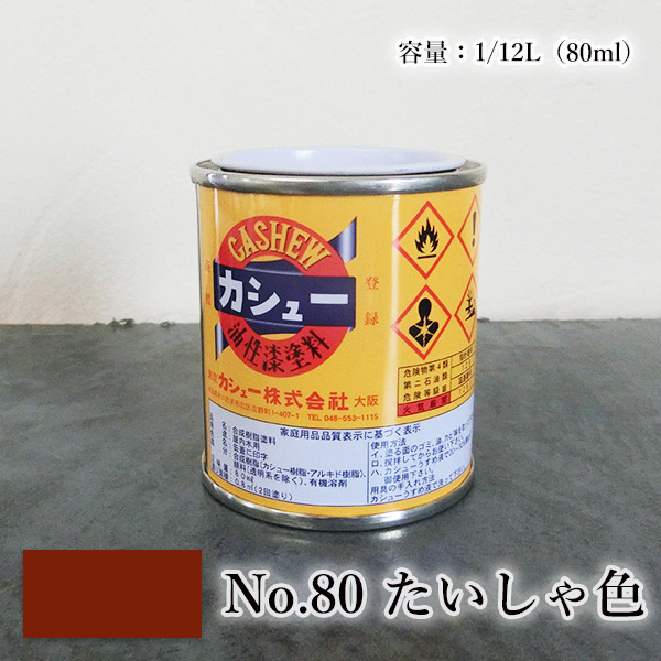 カシュー塗料 1/12L(80ml)#80たいしゃ色 1液 油性 自然カシュー カシュー漆 自然乾燥 カシュー塗り 漆代用 漆器 お盆 仏壇仏具 神社仏閣 カシュー株式会社