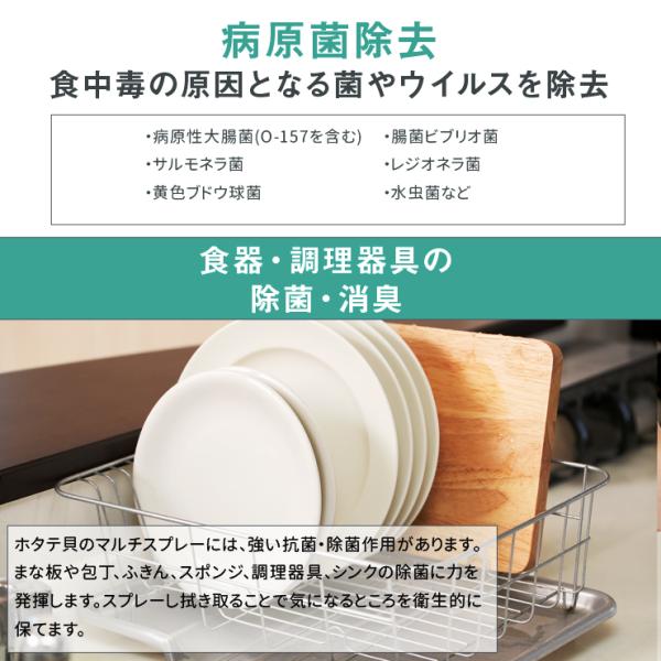 ホタテ貝のマルチスプレーには、強い抗菌・除菌作用があります。