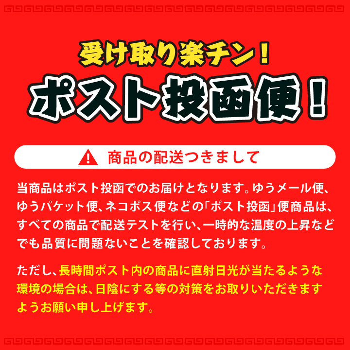 ・メール便発送のため、ポストへの投函となります。