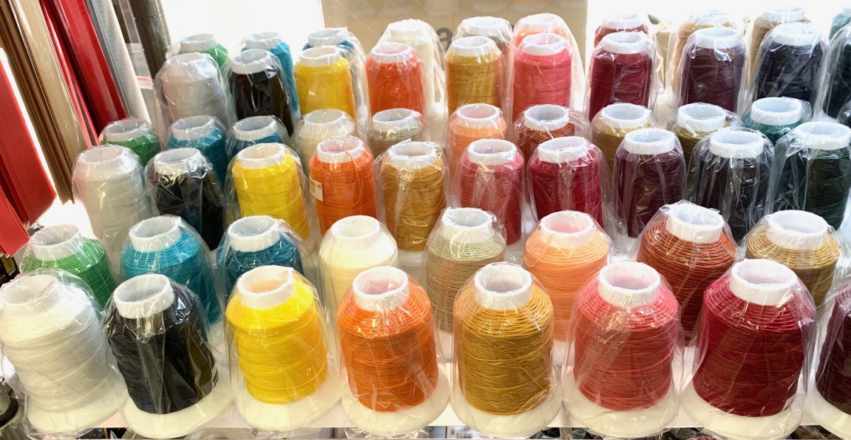 手縫い作業のワックス引きの必要がないダブルワックス加工のビニモ1番手麻糸の16/3位の太さになります。29色の展開になります。