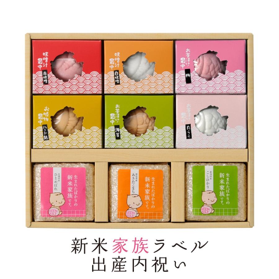 ブランド米3種と鯛の最中セット。目上の方へおすすめ。