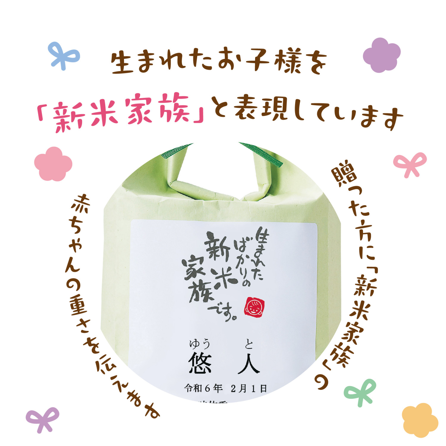 出生時と同じ重さのお米を贈ります。