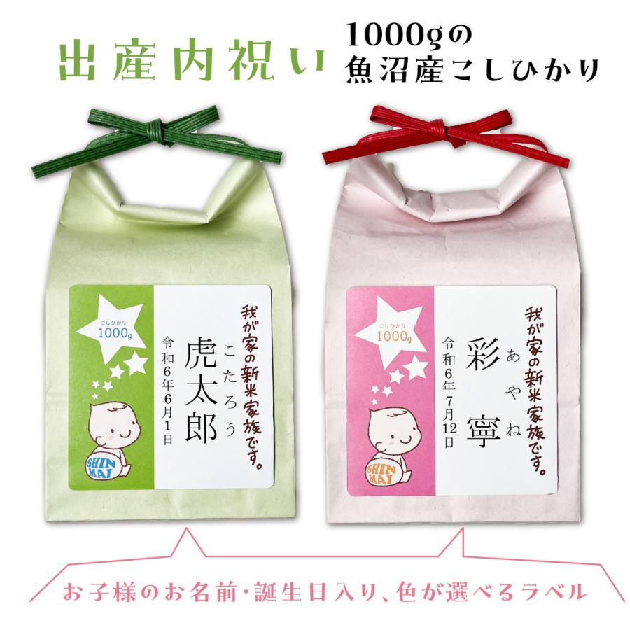 1000gのお米に、お子様の誕生日と名入れができる出産内祝いギフト。令和6年産の...
