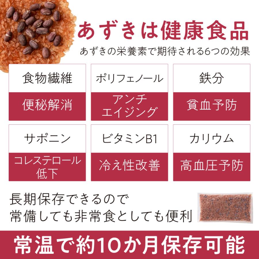 ”あずきたっぷりのお赤飯”あずきは、食物繊維と糖質で構成される炭水化物が主体の豆です。タンパク質も豊富で、ビタミンB群やミネラルを含みます。低脂質・高タンパクで食物繊維の豊富な健康食品です。