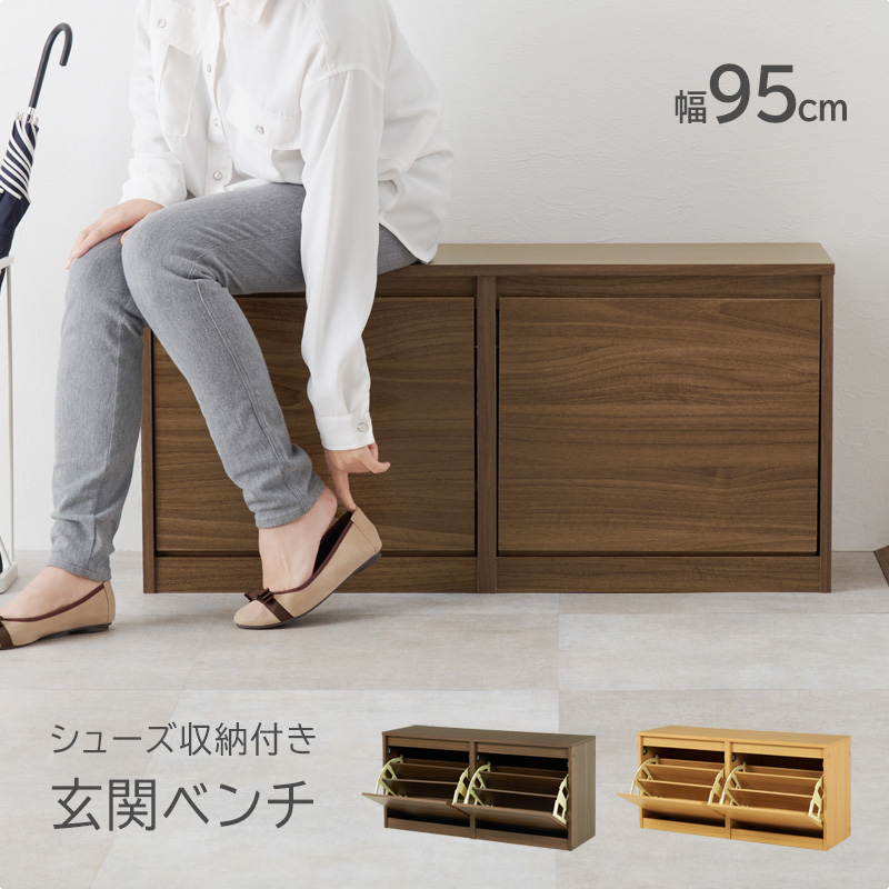 玄関ベンチ シューズラック シューズベンチ 玄関収納 ベンチ ベンチ収納 おしゃれ 幅95cm 下駄箱 靴収納 ナチュラル ブラウン