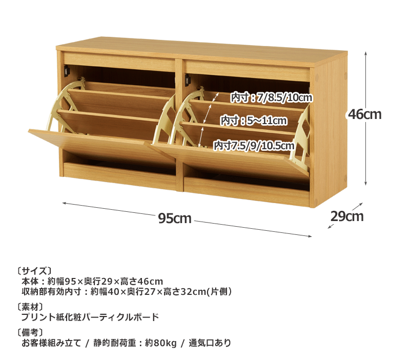 お客様組み立て / 静的耐荷重:約80kg / 通気口あり