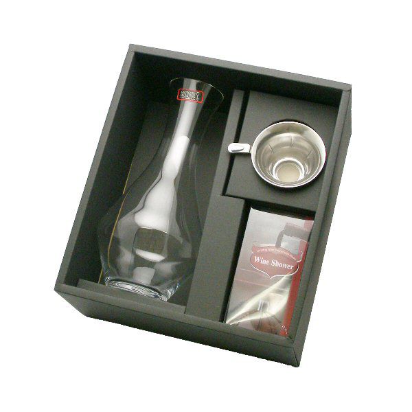 とっておきのワインを最高なコンディションに目覚めさせてくれる、ワインシャワーとリーデルのデカンタ・メルローとワインロートをセットにしました。
