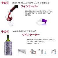 | バキュバン ワイン エッセンシャルズ | | ■セット内容■ | (1)コルクスクリュー x1、(2)ポンプ x1、(3)ストッパー x2、 (4)ワインサーバー x1、(5)ラピッドアイス x1