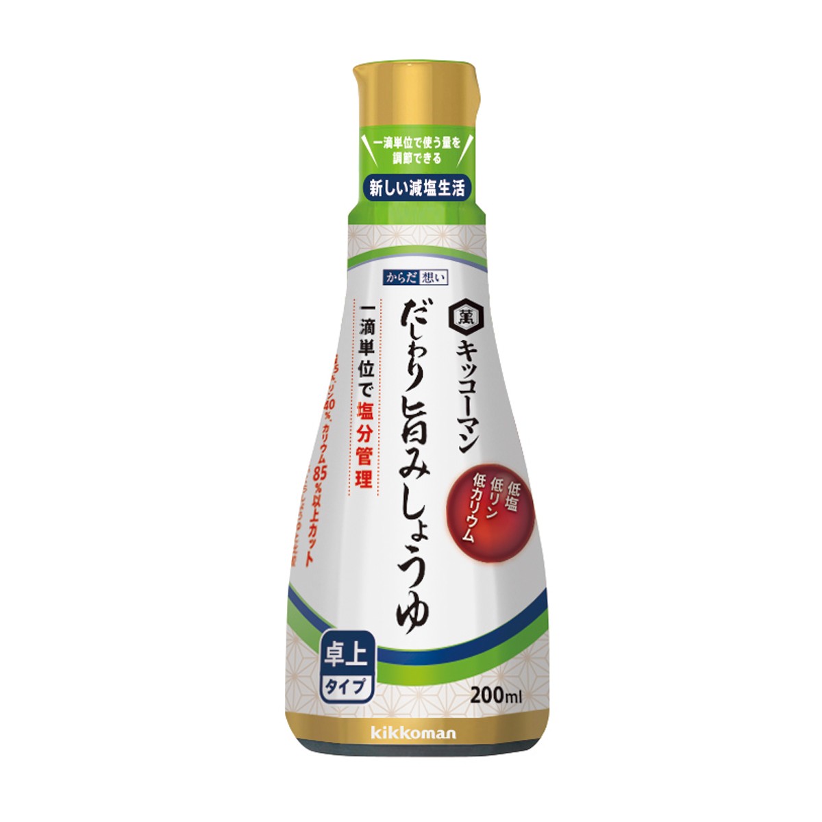 | 1滴単位で使う量を調節できるスクイズ式(押し出し式)のボトルで塩分管理に最適です。 食塩25%以上、リン40%以上、カリウム85%以上カット※しているため、安心してお使いいただけます。 しょうゆ感とだしの風味が強いので、少量で十分なしょうゆの味わいが感じられます。冷奴やおひたし、シュウマイ、お刺身などと相性抜群。 酸化をふせぐやわらか密封ボトルで、開封後も常温で保存が可能です。 ※日本食品標準成分表2010「こいくちしょうゆ」 |