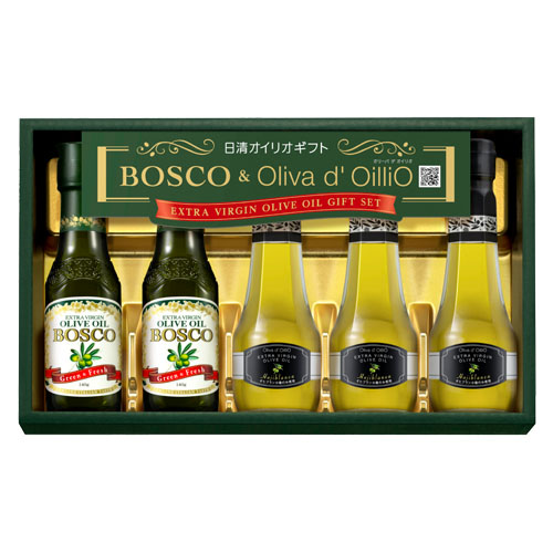ギフト オリーブオイル詰め合わせ 日清オイリオ BOSCO&Oliva d' OilliO エキストラバージン オリーブオイル 5本セット 包装済 のし対応