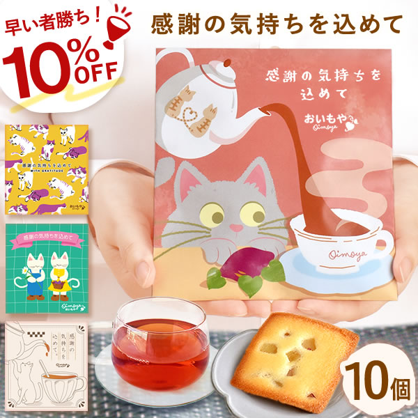 | 商品名 | 感謝のメッセージ付き♪ ねこ柄パッケージ お芋のフィナンシェ &はちみつ紅茶 プチギフト |