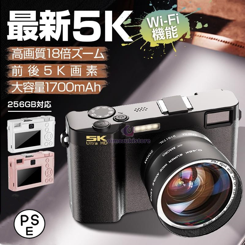 デジカメ デジタルカメラ 5K WiFi機能 18倍ズーム 6400万画素 高画質 ビデオカメラ オートフォーカス ウェブカメラ機能 手振れ補正 IPS大画面 軽量 新品