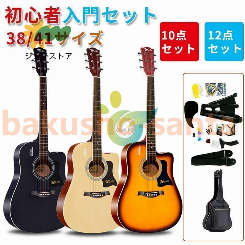 アコースティックギター初心者セット 楽器 入門 ギター 10/12点セット 38"/40"/41" 演奏用ギター 練習用 カラー選択 子供向け 大人向け