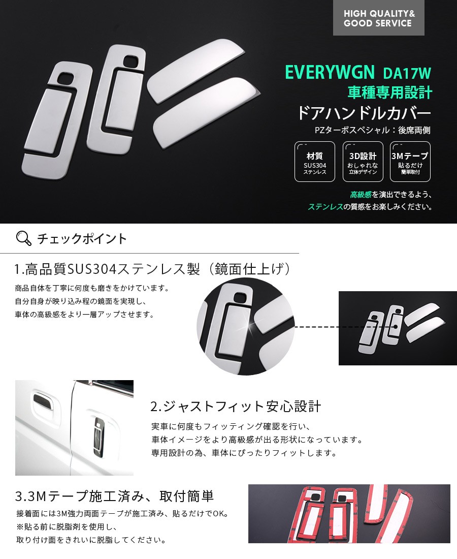 スズキ エブリイワゴン DA17W 2015年 サイドドアハンドルカバー ガーニッシュ ドアノブパネル メッキモール ステンレス製(鏡面仕上げ) ドレスアップ カスタムパーツ 外装 エアロ アウタードアトリム アクセサリー 装飾 キズ防止 4PCS EX531
