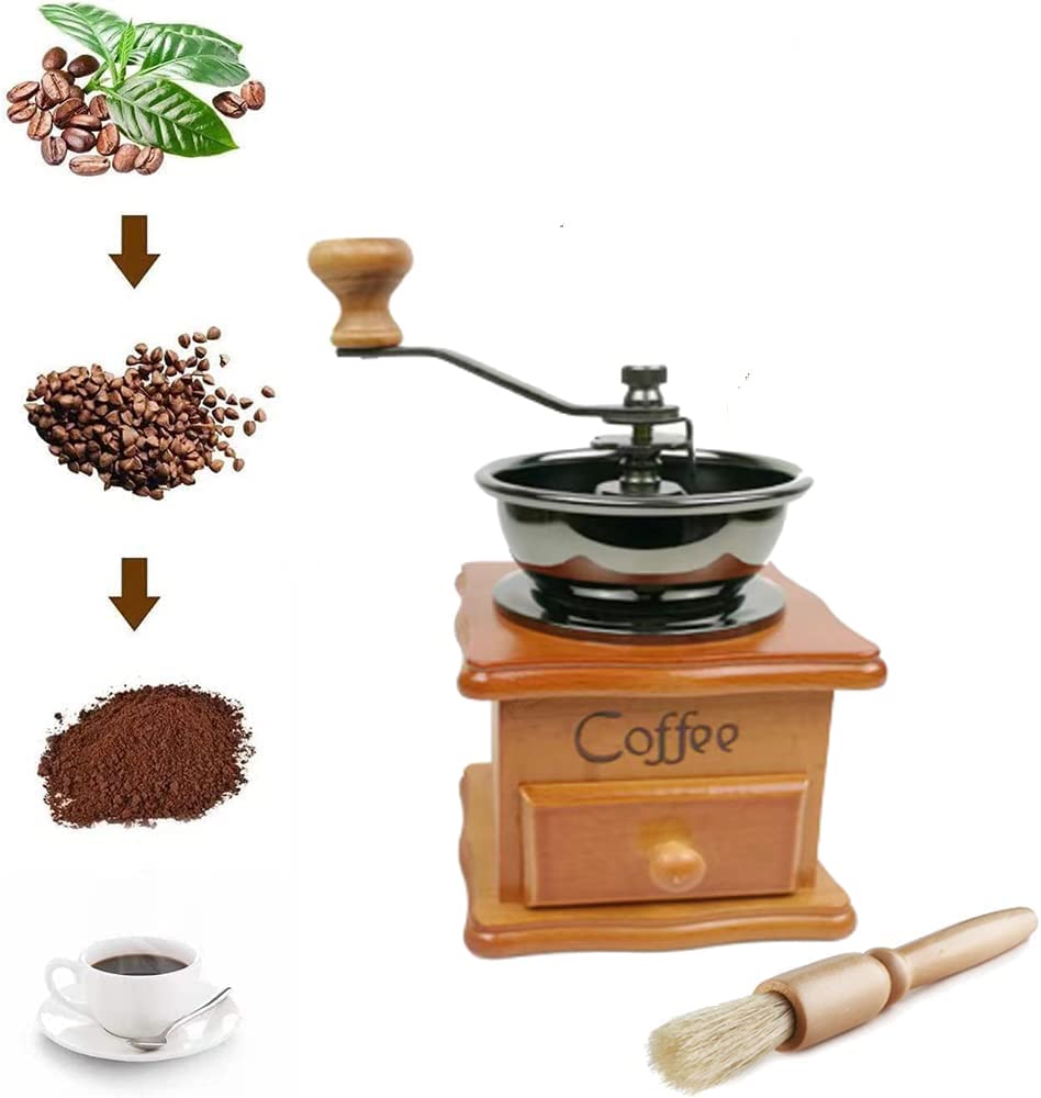 【コーヒーミル 手動 ヴィンテージ】このクラシックなレトロスタイルのコーヒーグラインダーはプロの手で作られており、セラミックコーンバリ、厚みのある金属製豆ボウル、木製引き出し、手動クランクハンドルで設計されており、毎日の自家醸造エスプレッソを簡単に処理できます。コーヒーとフィルターコーヒーのさまざまな粉砕作業。いつでも挽きたての自然な味わいのコーヒーを楽しめます。