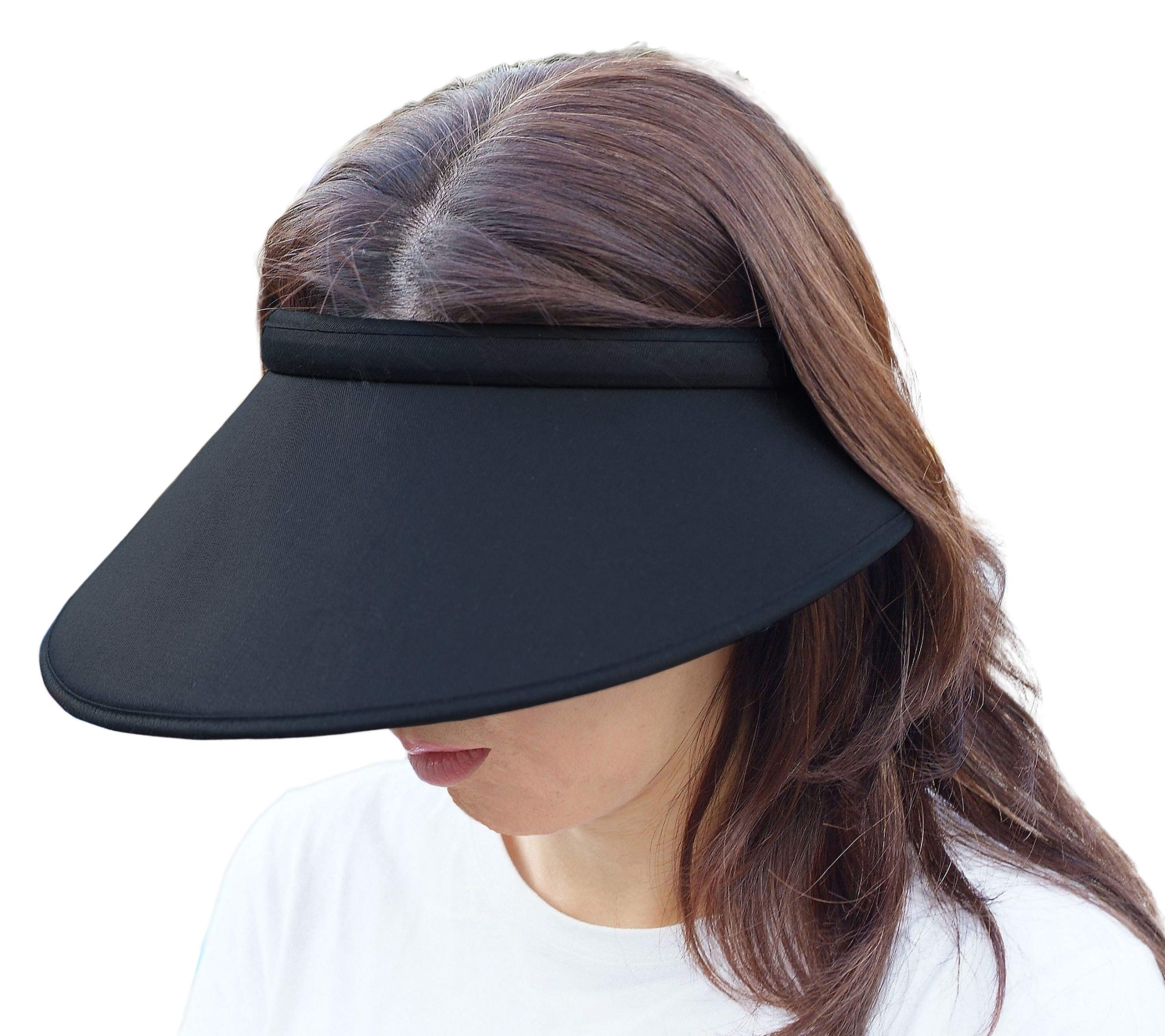 大きなつば 日除け UVカット サンバイザー 横が長く耳も紫外線から守ります。