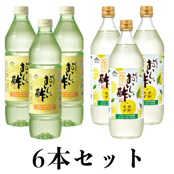 おいしい酢 955ml×3本 おいしい酢高知ゆず 900ml×3本 日本自然発酵 計6本 お酢Lセット 酢 調味料