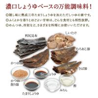 しょうゆ(本醸造)(国内製造)、糖類(砂糖・ぶどう糖)、かつお節エキス、食塩、みりん、酵母エキス、醸造酢、昆布エキス、しいたけ、ふし(かつお、ムロアジ、さば)、(一部に小麦、大豆、さばを含む)