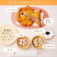 | 内容量 | ●ハレの日パイ×1(約19cm × 15cm) ●赤飯×1 ●はまぐり×1 ●お吸い物の素×1 ●歯固めの石×1 ●祝い箸×1 ●鯛飾り×1 ●敷き紙(白)×1 ●agneyお食い初め食器セット(お椀(φ10×高さ 5cm 容量約120ml) ×2、お皿×3( 直径18・16・9cm)お箸×1膳 (16.5cm)) ギフトボックス入(サイズ:34×25×H8cm 重さ:約740g) |