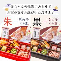 | 内容量 | ●お食い初め重9マス([1]牛蒡田舎煮15g、[2]寿伊達焼2個、[3]青菜羽二重巻2個、[4]三本松2個、[5]椎茸旨煮2切、[6]紅白はまぐり新丈各1個、[7]紅白なます30g、[8]花巾着2個、[9]梅干し1個、[10]たこ旨煮2切、[11]ボイル海老2尾、[12]慈姑レーズンカステラ2個、[13]赤林檎風味きんとん2個、[14]銀鮭塩麹焼2個、[15]若桃甘露煮2個、[16]鶏鍬焼 松葉串2個、[17]紫花豆2個) ●祝い鯛姿焼き(水揚げ時加工前400g / 下処理焼き加工後190g)×1 ●赤飯100g×1 ●蛤×1 ●お吸い物×1 ●歯固め石×1 ●祝箸×1 ●鯛飾り×1 ●敷き紙(白)×1 ●金紙×1 ●立札×1 ●お名前シール×1 ●使い切り食器×2 |