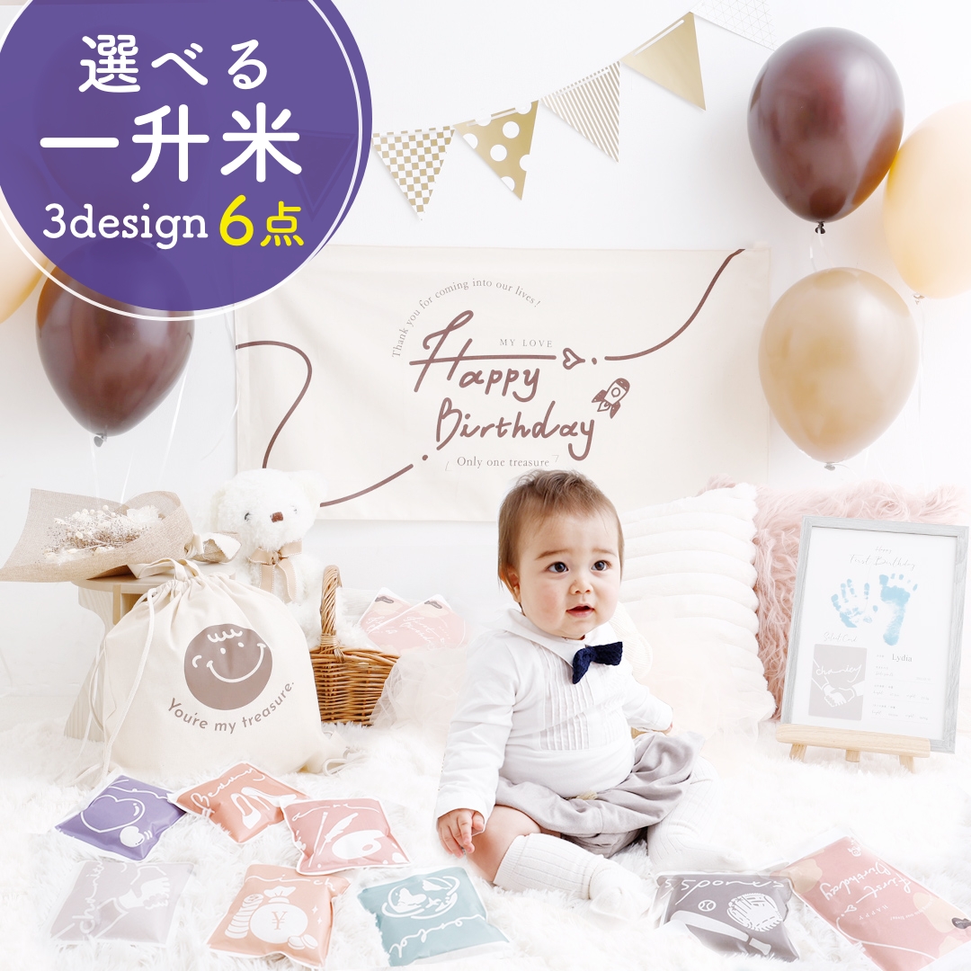 | セット内容 | ●300g(2合)×1 ●150g(1合)×8 ●メモリアルカード×1 ●リュックサック×1 ●ガーランド×1 ●タペストリー×1 ●お祝いの手引書 |