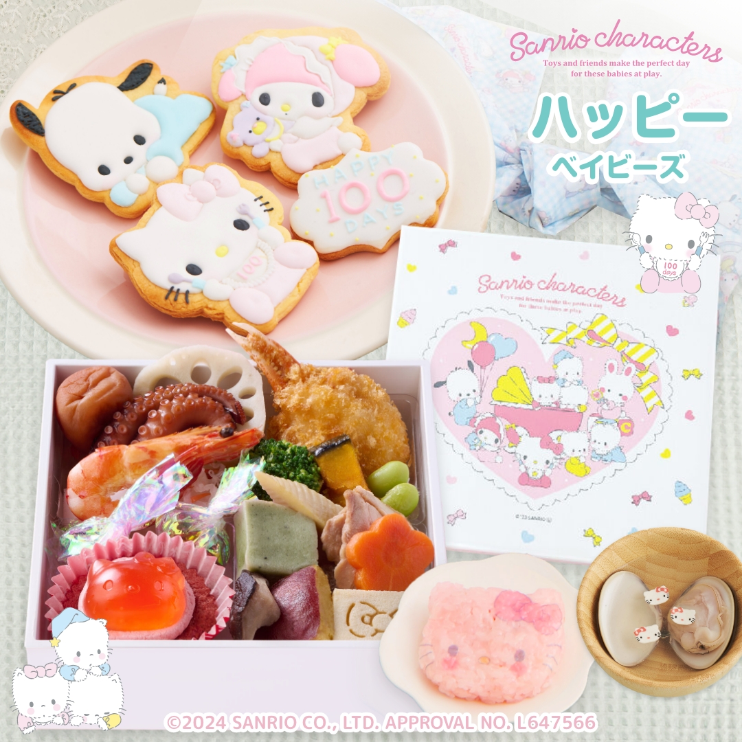 100days サンリオキャラクターズベイビーズのアイシングクッキー付きのお食い初め膳