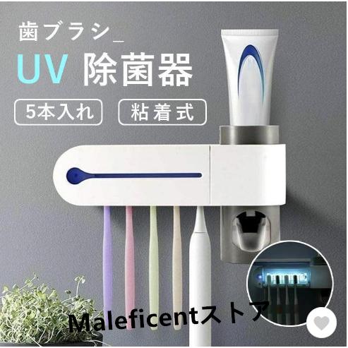 UV 歯ブラシスタンド 自動歯磨き粉チューブ 壁掛け 歯ブラシホルダー 粘着式 バスルーム収納 UV除菌 歯ブラシ ホルダー スタンド 一台多役 バス用品 2021新作
