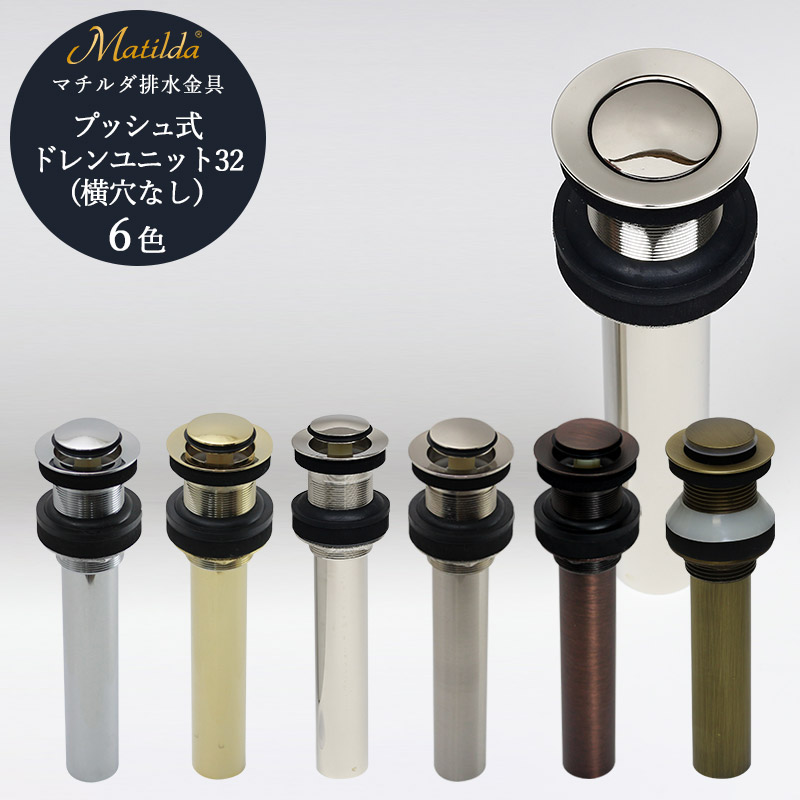32mm規格上部排水金具。オーバーフロー非対応の横穴無し排水口金具です。