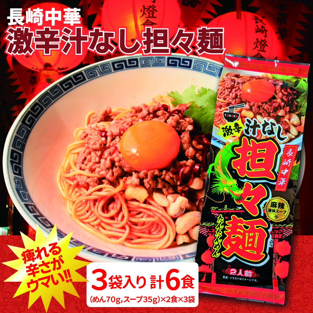激辛 汁なし担々麺 6食入り ラーメン ストレート麺 旨辛 スープ 九州 長崎 中華 麻辣 マーラー 簡単調理 唐辛子 花椒 五香粉 送料無料