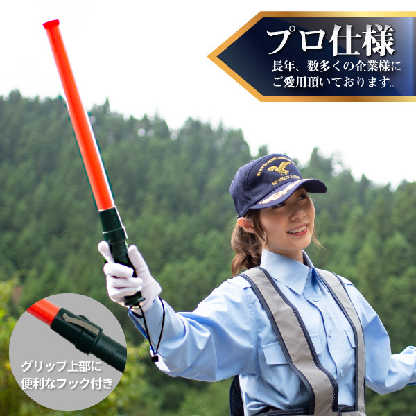 ・グリップは滑りにくいデザインで雨天でもしっかりと誘導灯を振ることができます。