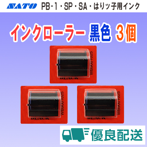 サトー PB-1 SA SP はりッ子 用 インクローラー 黒色 3個 セット ポスト投函型フルフィルメント (インキローラー SATO ラベラー ハンドラベラー インク インキ)