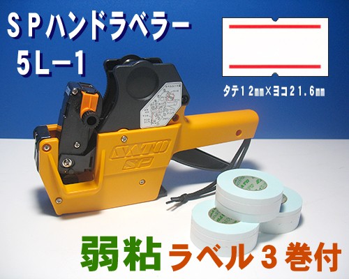サトー SP ハンドラベラー 5L-1 1台 & 二本線 ラベル 弱粘 3巻 & インク 黒色 1個のセット (SATO・ラベラー・ラベル・インキローラー・5桁)