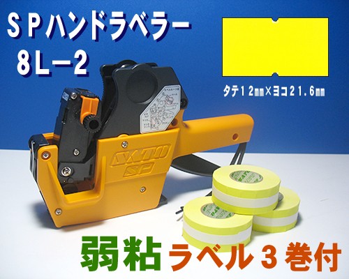 サトー SP ハンドラベラー 8L-2 1台 & 黄ベタ ラベル 弱粘 3巻 & インク 黒色 1個のセット (SATO・ラベラー・ラベル・インキローラー・8桁・黄無地)