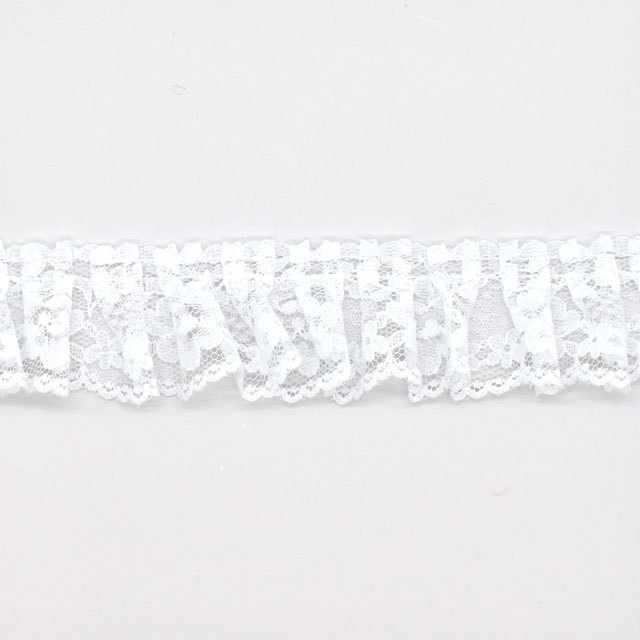 ラッセルフリルギャザーレース(05144Q) 約3.5cm幅 1.白 07Ac99_