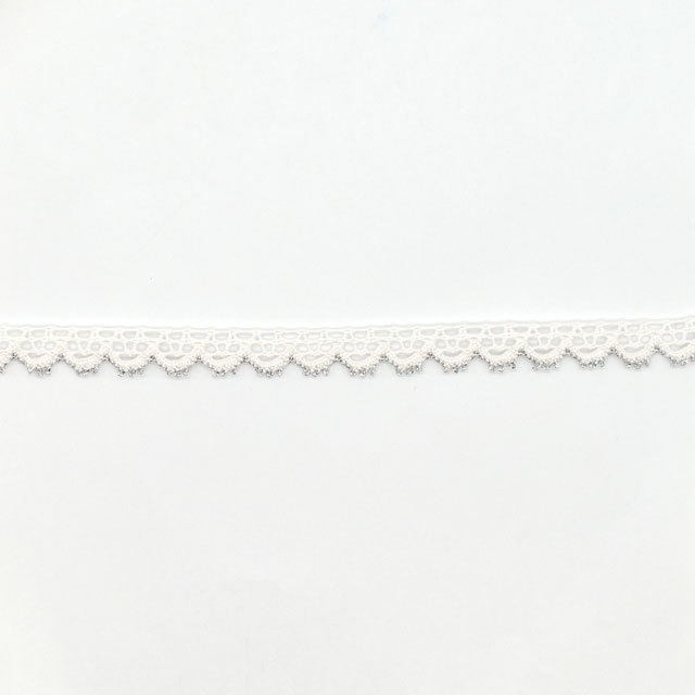シンプルな形のレースの縁にラメ糸で装飾がされたトーションレースです。