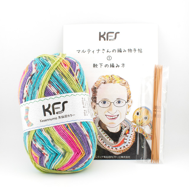 マルティナさんと京都の編み物仲間たちの総力を結集し作成した、一般的な「編み図」ではなく写真やイラストを多用した、図解式の"靴下の編み方ガイド"が入っています。