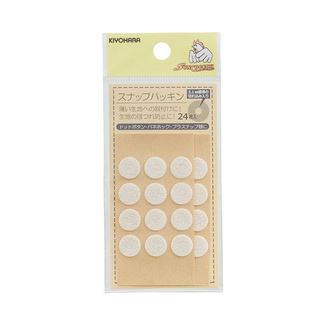 ドットボタン、バネホック、プラスナップを取り付ける際に、生地の厚みUPとほつれ防止に貼って使うパッキンです。