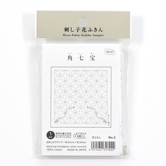 オリムパス 刺し子キット 花ふきん 角七宝-かくしっぽう(2) 白 06Bg99_