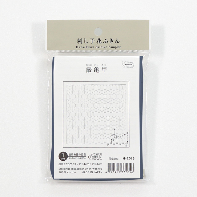 \期間限定10%OFF/ オリムパス 刺し子キット 花ふきん 霰亀甲-あられきっこう(H-2013) 藍 06Bg99_