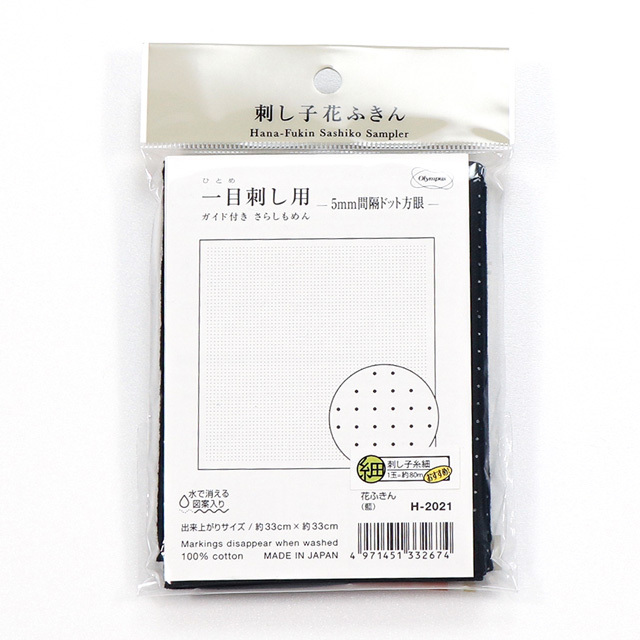 \期間限定20%OFF/ オリムパス 刺し子キット 花ふきん 一目刺し用ガイド付き さらしもめん(H-2021) 藍 06Bg99_