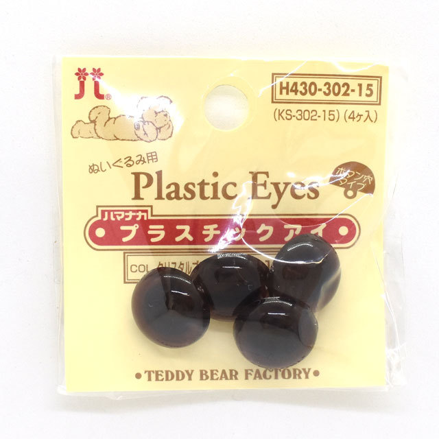 ハマナカ ぬいぐるみ用 プラスチックアイ ボタン穴タイプ 15mm(H430-302-15) クリスタルブラウン 06Bm99_