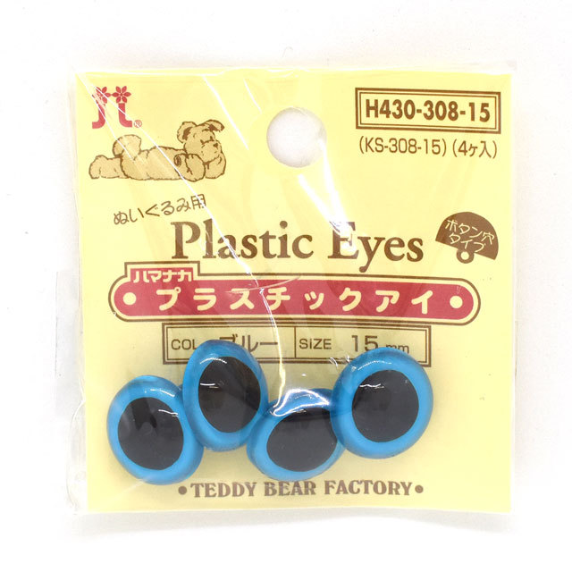 ハマナカ ぬいぐるみ用 プラスチックアイ ボタン穴タイプ 15mm(H430-308-15) ブルー 06Bm99_