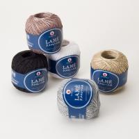 一般的なラメの糸は強度が弱く切れやすいのが弱点ですが、強度のある糸とラメ箔を合わせることで十分な強度がある糸になっています。