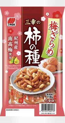 紀州産南高梅の酸味とざらめの甘さが程よく調和した絶妙な味わいの柿の種です。便利な食べきりサイズ5袋入り。