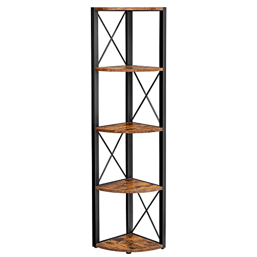 VASAGLE オープンラックコーナーラック 木製 5段 オープンシェルフ コーナー棚 壁収納棚 三角コーナー玄関 高さ160cm LLS805B01