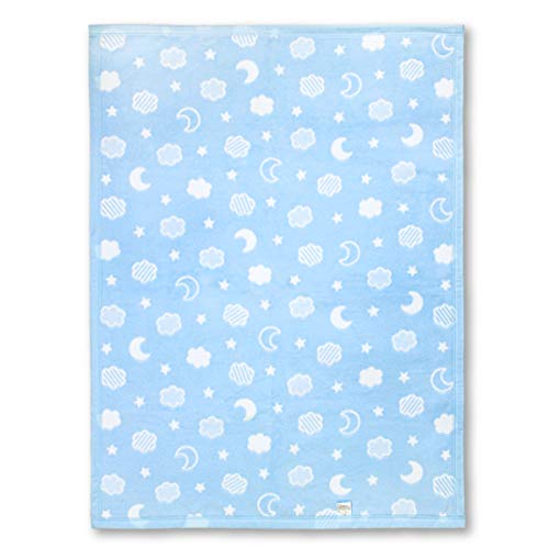 un doudou 日本製 ベビー 綿毛布 ブランケット 85*115cm 月と雲 サックス 綿100% ジャガード織り1335SA